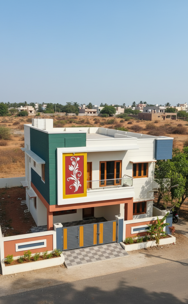 An Independent G+1 House with One Master Bedroom and One Kids Bedroom , Ample Space for Parking and Small Garden .